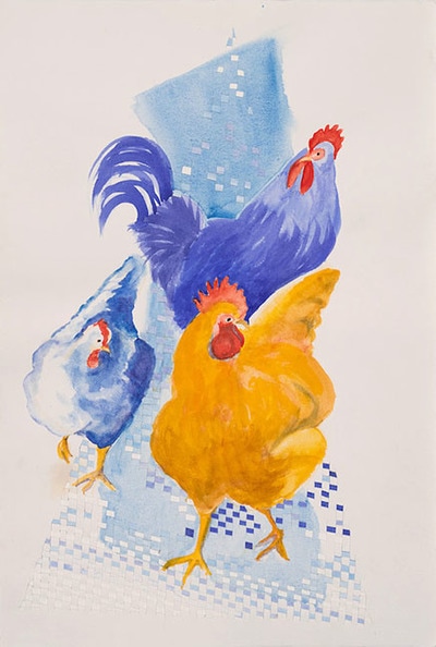 Giclée prints and paintings are on 140 lb Canson or Arches watercolor paper.